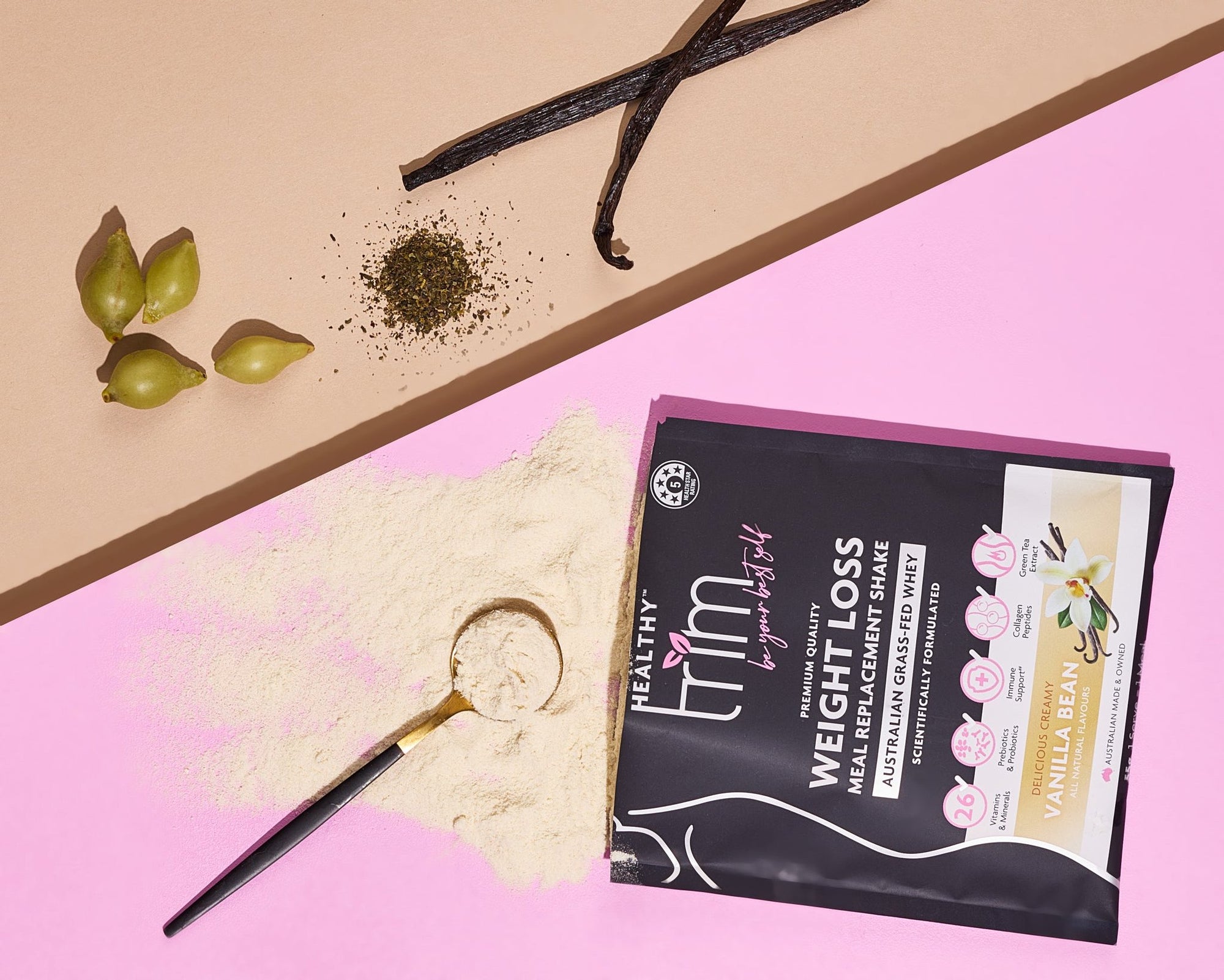 - 1 x Single serve vanilla sachet of Healthy Trim Meal Replacement Shake